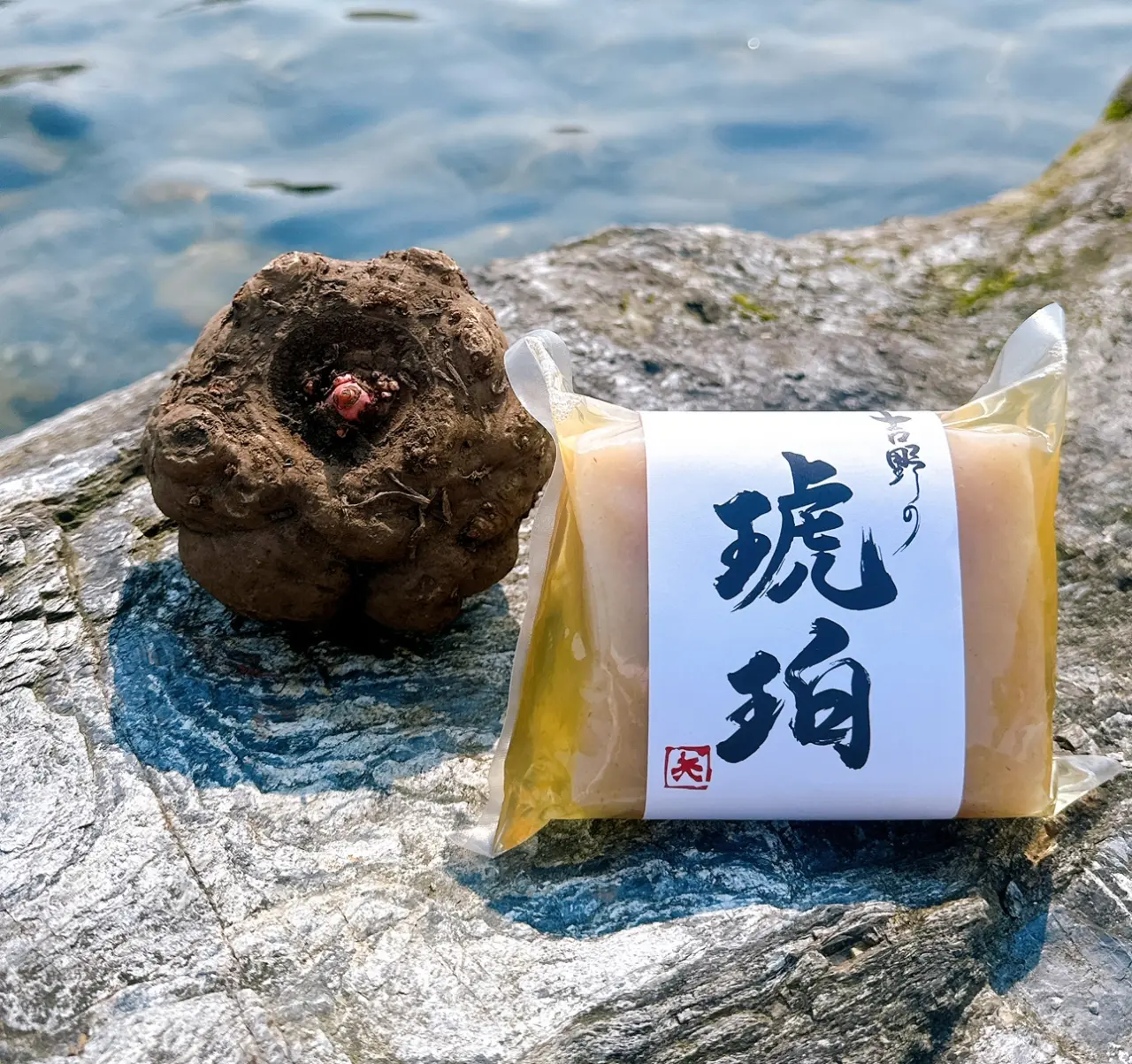 吉野の本格手練りこんにゃく。匠が手練りで仕上げることで、弾力ある歯応えと、驚くほどの味染みを引き出します。日本の宝物グランプリで日本一に輝いたこんにゃくを、串こんにゃくやこんにゃく唐揚げでどうぞ。