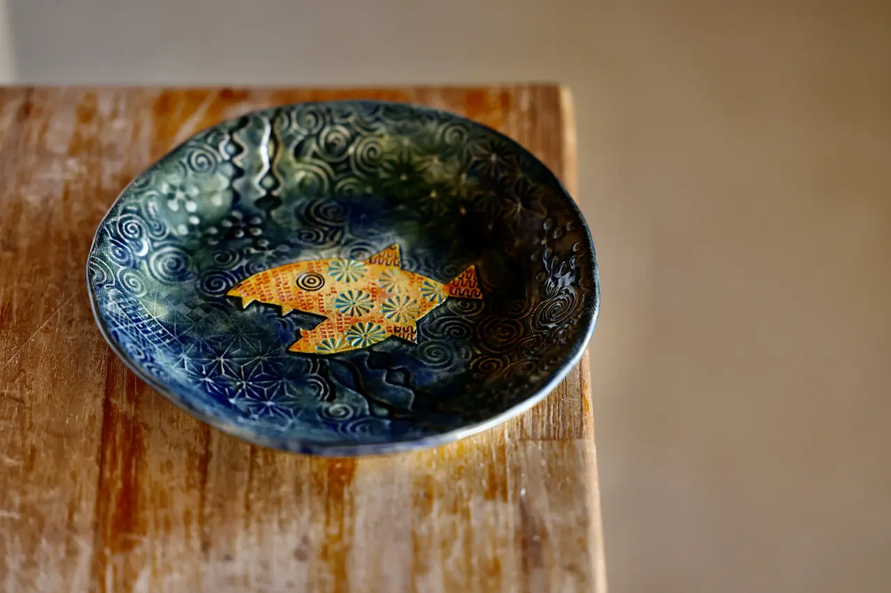 幼いころバッチが好きでカンカンいっぱいに集めていました。宇宙警備隊やらジャイアンツなどのバッチを身につけると5センチくらい浮き上がってまるで自分がヒーローになったような気がして誇らしかった。ひょとしたらうつわにもぺたんと貼り付けたらパワーアップしてスーパーでスペシャルに変身するかも‥貼花という貼り付けの技法を好んでつかうのはそんな気持ちがあります。美しい物や楽しい事を思い描くと子供の頃の事を思い出してしまいます。おばあちゃんちで見つけた舶来品のかっこよくてかわいい小物たちおもちゃ屋の片隅で色褪せた箱に入ったブリキのロボットきっと自分の好きな物たちはどこかノスタルジックでレトロでポップな物たちだ。そんな器を作っていきたい。